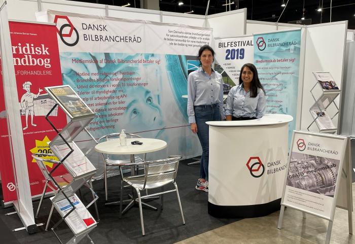 På billedet er Pia Egeskov og Keerthika Thilagarajah, som begge er kørende konsulenter for Dansk Bilbrancheråd, men du kan møde mange flere af os.