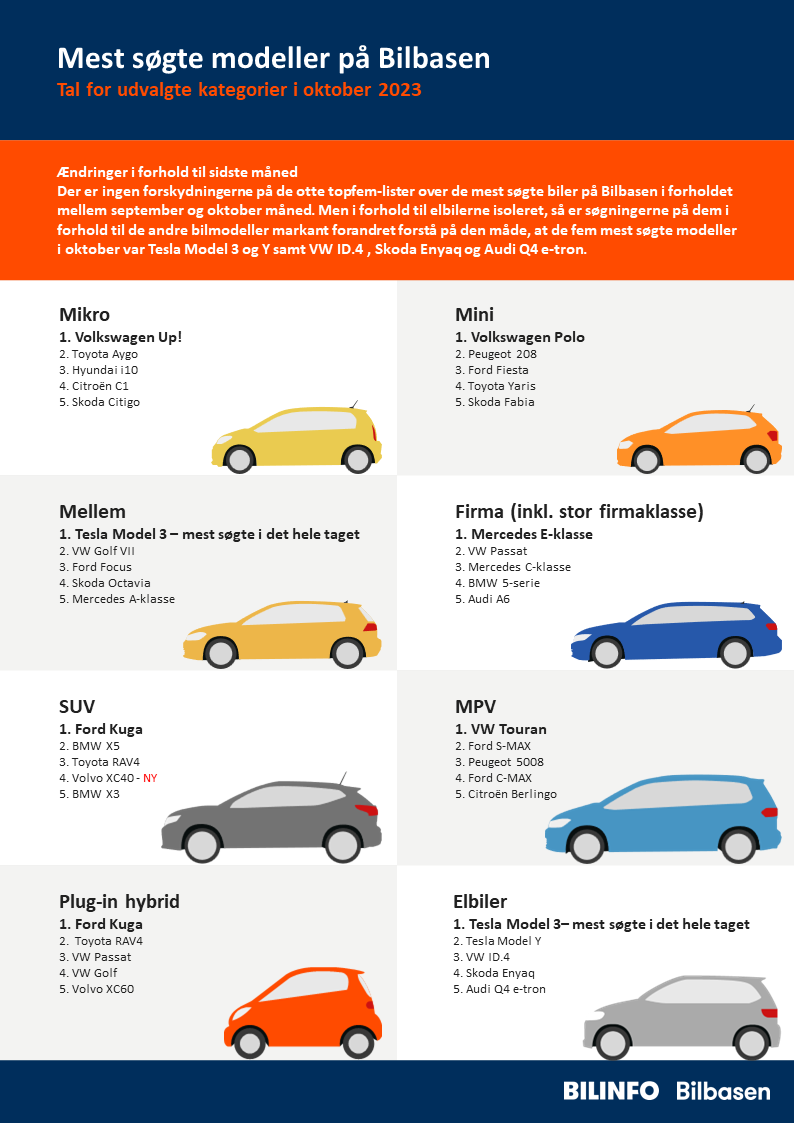 Elbilernes popularitet understreges af Bilbasen top-ti-liste over de hurtigst omsatte biler på markedet. For første gang nogensinde er den totalt domineret af elbiler med 19 lagerdage i snit for de ti hurtigst omsatte biler og 26 dage for den brede mængde af elbiler - endnu en rekord.