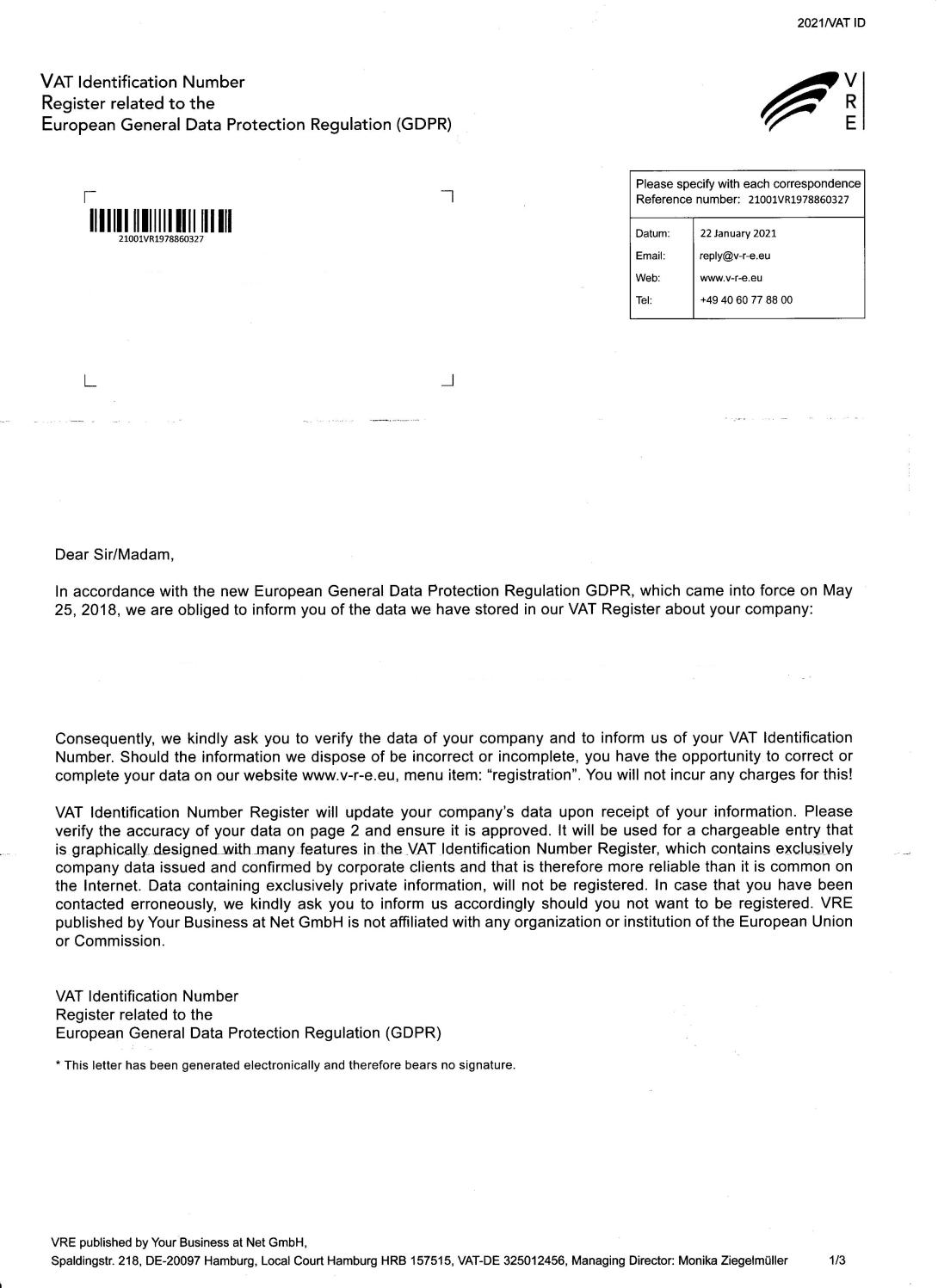 Betalingen vil angiveligt give adgang til en database med informationer om GDPR og også telefonsupport. Der står ganske vist i brevet, at der ikke er tale om en regning, men at hvis man betaler den, så har man dermed også sagt ja til den foreslåede aftale.