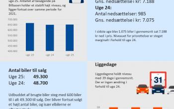 Alle nøgletal indikerer en solid omsætning på brugtbilmarkedet i uge 25. Der er fortsat massiv interesse og søgning på elbilerne. Og så er udbuddet af brugte Tesla 3 s teget med 30%!