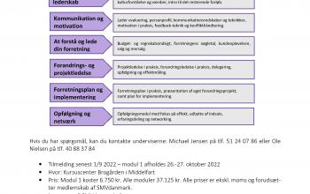 SMVdanmark har forlænget fristen for tilmelding til deres praktisk orienteret lederuddannelse, hvor du som leder og driftsansvarlig i din virksomhed er i centrum. Den nye frist er 1. oktober.