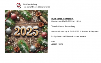 Flere nyheder Kommende begivenheder![]() Husk at sætte et kryds i kalenderen til Julefrokost 2025 med DBR Sønderborgfre, 12/12/2025 - 18:30Torvehallerne, SønderborgFredag den 12/12-2025 kl. 18:30Torvehallerne, SønderborgSenest tilmelding d. 5/12-2025 til Anders Abildgaard - anders@abildgaards-auto.dk Lokalforeninger: Sønderborg |