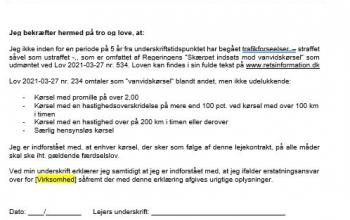 Tro og love erklæring (vanvidskørsel)