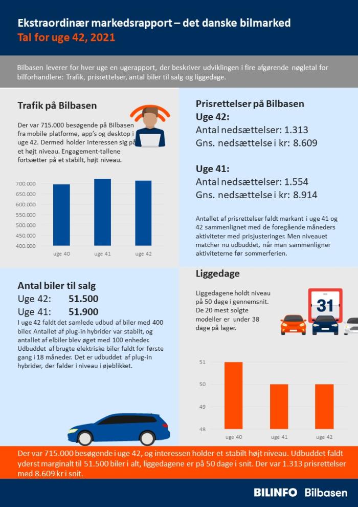 Der var 715.000 besøgende i uge 42, og interessen holder et stabilt højt niveau. Udbuddet faldt yderst marginalt til 51.500 biler i alt, liggedagene er på 50 dage i snit. Der var 1.313 prisrettelser med 8.609 kr i snit. Der var 715.000 besøgende i uge 42, og interessen holder et stabilt højt niveau. Udbuddet faldt yderst marginalt til 51.500 biler i alt, liggedagene er på 50 dage i snit. Der var 1.313 prisrettelser med 8.609 kr i snit.