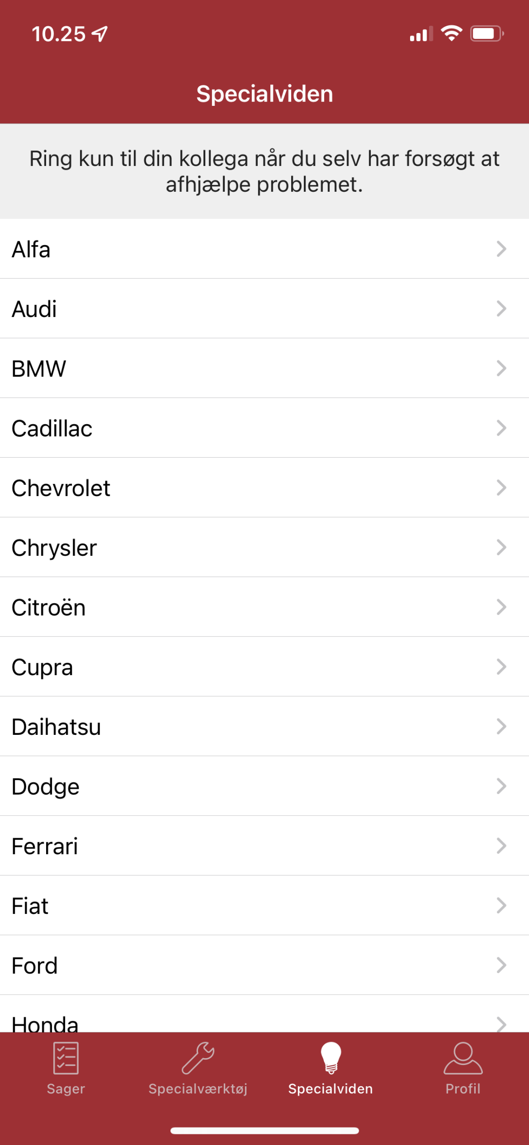 - Find hjælp til specialviden om forskellige bilmærker (app).