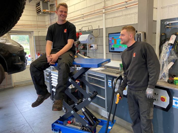 Med et løftebord kunne vi lige pludselig løse mange andre opgaver end kun hjulløft – for eksempel at løfte en gearkasse. Vi har endda en ikke så høj svend, som bruger den til lige at få 20-30 cm ekstra højde, når han skal nå noget på høje hylder,” siger Anders Larsen som hermed viser, hvor alsidig et hjælpemiddel deres nye løftebord er.