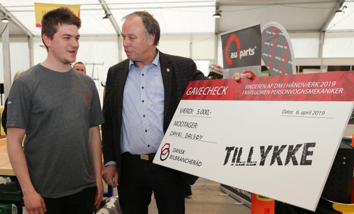 I kategorien Danmarks bedste personvognsmekaniker 2019 vandt Daniel Balsby. Daniel arbejder hos medlem af Dansk Bilbrancheråd Molges Biler, og hans skole er TEC Hvidovre. Dansk Bilbrancheråd ønsker stort TILLYKKE både til Daniels og Daniels mester Claus Molge. På et af billederne ønsker rådets landsformand Henrik Pedersen tillykke med den traditionelle præmiecheck.