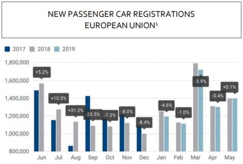 I maj steg antallet af nyregistreringer i EU en anelse.