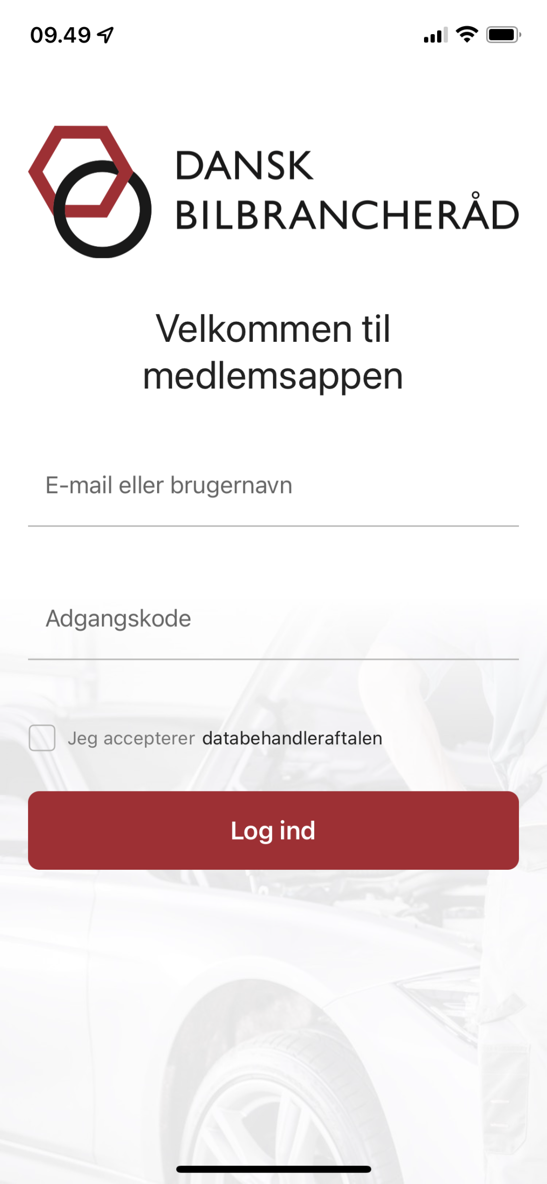 Indtast samme e-mail eller brugernavn og adgangskode, som til Dansk Bilbrancheråds hjemmeside dbr.dk. (På dbr.dk kan desuden oprettes flere profiler til værkstedet, fx til regnskabsafdelingen.)