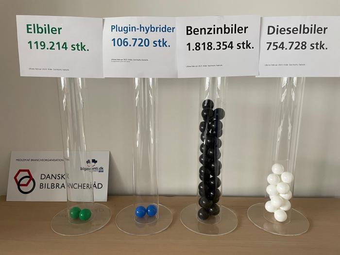 Hvor mange rene elbiler og plugin-hybrider er egentligt registreret i Danmark i forhold til benzin- og dieselbiler? Det viser Dansk Bilbrancheråds Elbilbarometer: